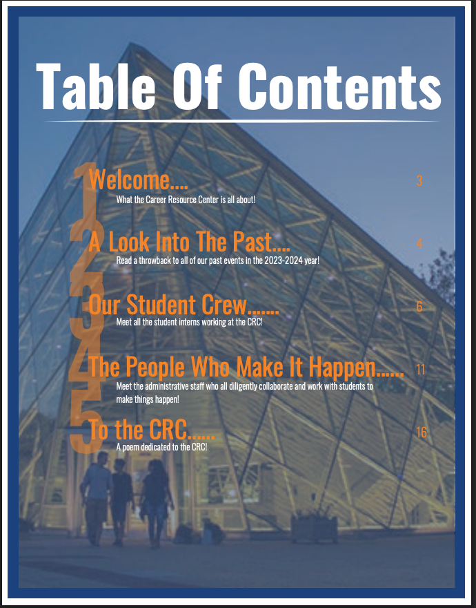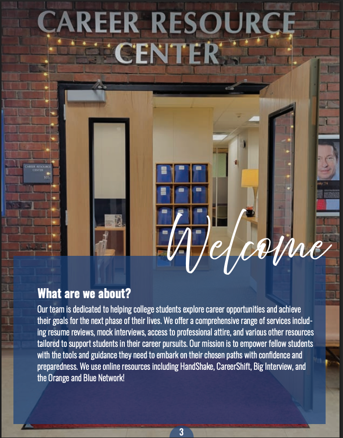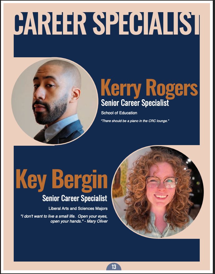 A semester long set-up and collection of information for the Career Resource Center Crew to create stylized and school branded work to represent the 2023-2024 interns and co-workers.